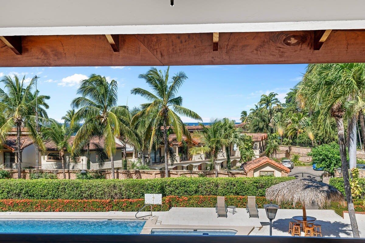 Casa Sail Away Villa #13 in Flamingo is a 2-bedroom, 3-bath condo with close ocean views, a swimming pool and a jungle behind where monkeys are common visitors. It has two stories with interior stairs. Perfect for a family trip to Costa Rica or a small group of friends.